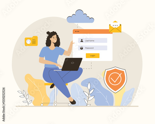 The watermark will not be included on Wall mural.: Cloud data protection - internet security, privacy access with password - flat vector illustration -