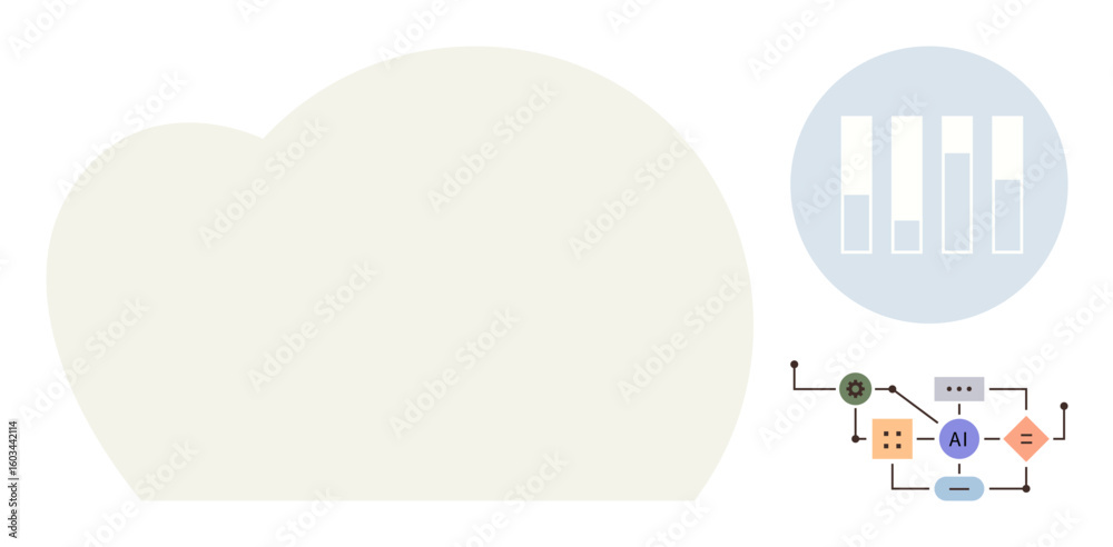 Wall mural : Cloud graphic with analytics chart and ai-driven workflow diagram - ideal for technology, ai, cloud c