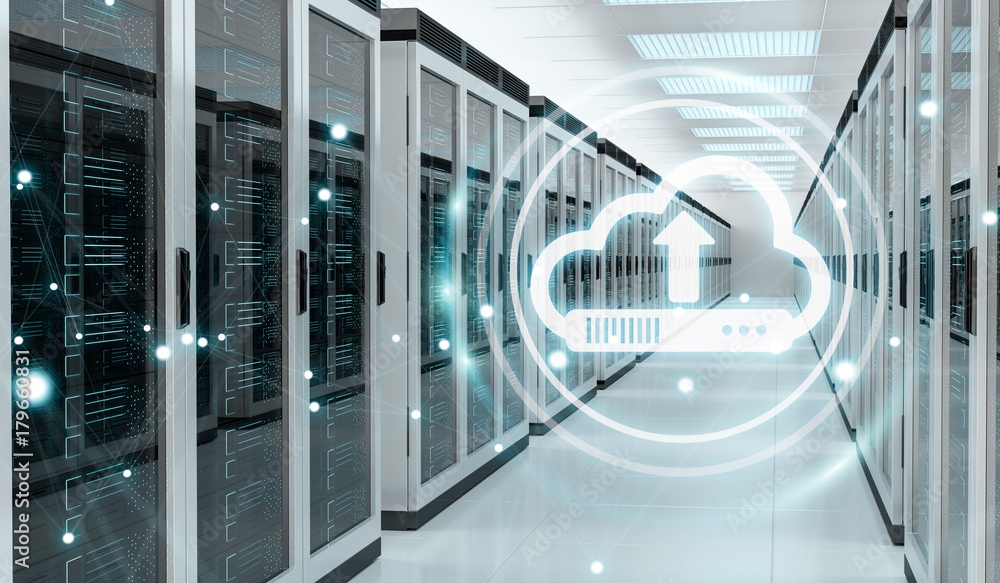 Wall mural cloud icon downloading datas in server room center 3d rendering - Wall murals Wall mural cloud icon downloading datas in server room center 3d rendering - Wall murals