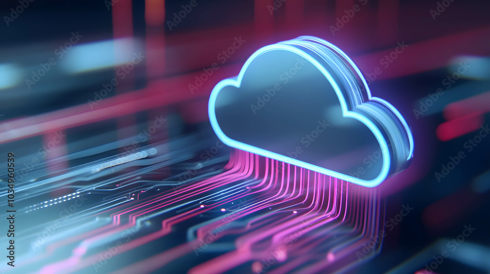 Wall mural : Cloud image representing connectivity and data flow, creating a technological network - data storage