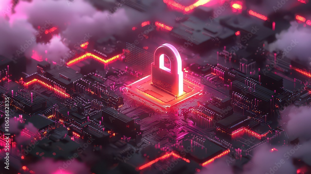 Wall mural cloud server protection. cloud server security. secure cloud storage represented by a digital lock. - Wall murals Wall mural cloud server protection. cloud server security. secure cloud storage represented by a digital lock. - Wall murals