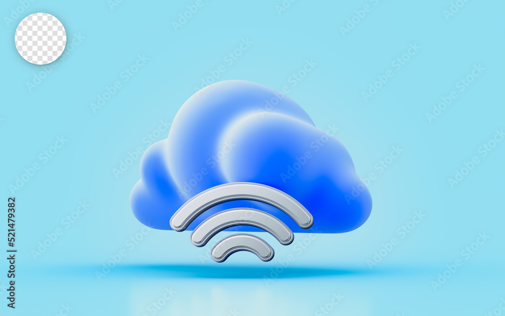 The watermark will not be included on Wall mural.: Cloud sign with wi-fi signal 3d render concept for server connection internet data store