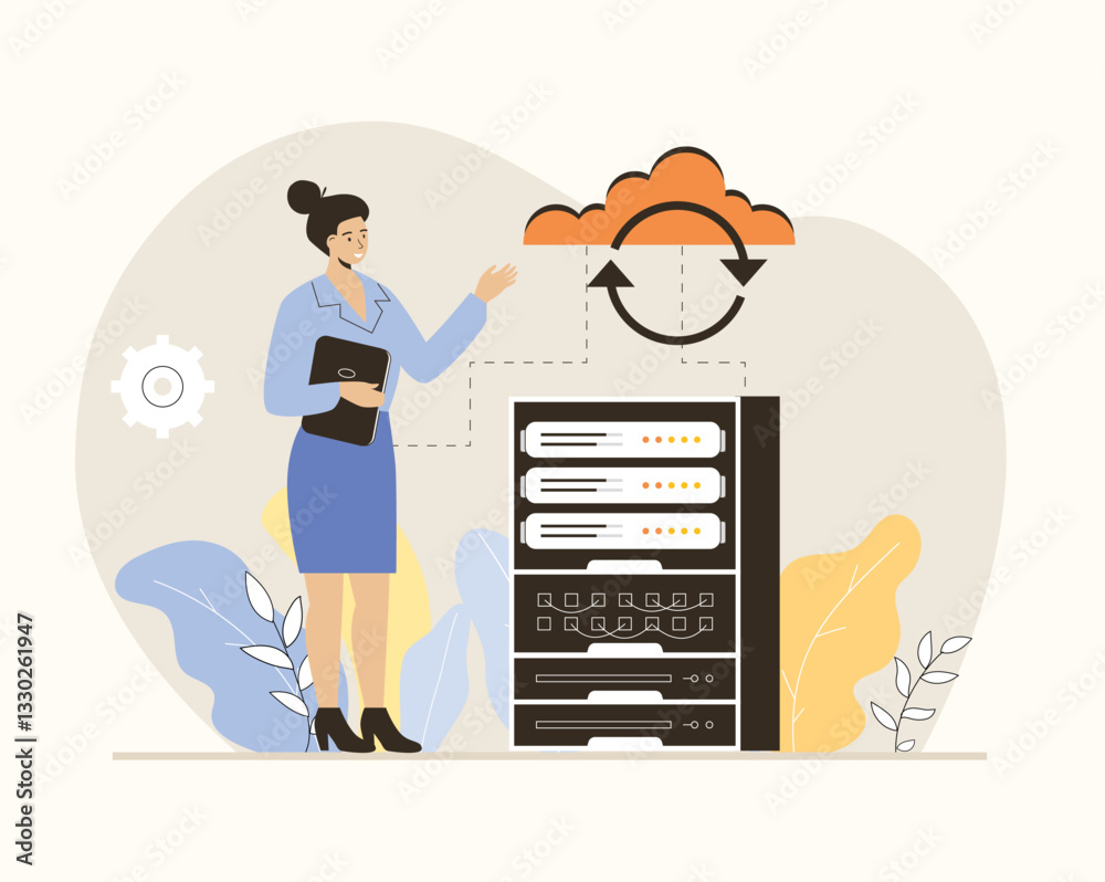 Wall mural cloud synchronization. cloud storage. digital file organization service or app with data transferrin - Wall murals Wall mural cloud synchronization. cloud storage. digital file organization service or app with data transferrin - Wall murals