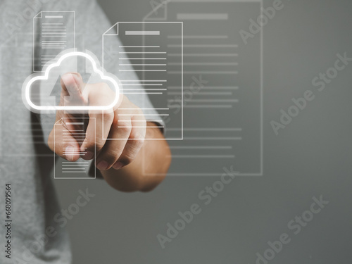 The watermark will not be included on Wall mural.: Cloud technology connection networking storage, businessman connecting business backup database fina