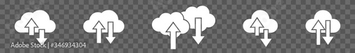 Wall mural : Cloud upload download icon white | clouds arrow up down illustration | computing storage symbol | se