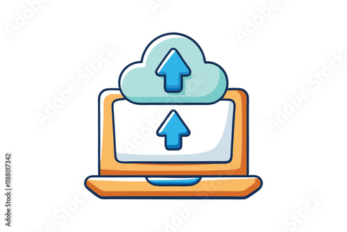 Wall mural : Cloud upload icon illustration in vibrant colors with an arrow pointing up, symbolizing digital stor