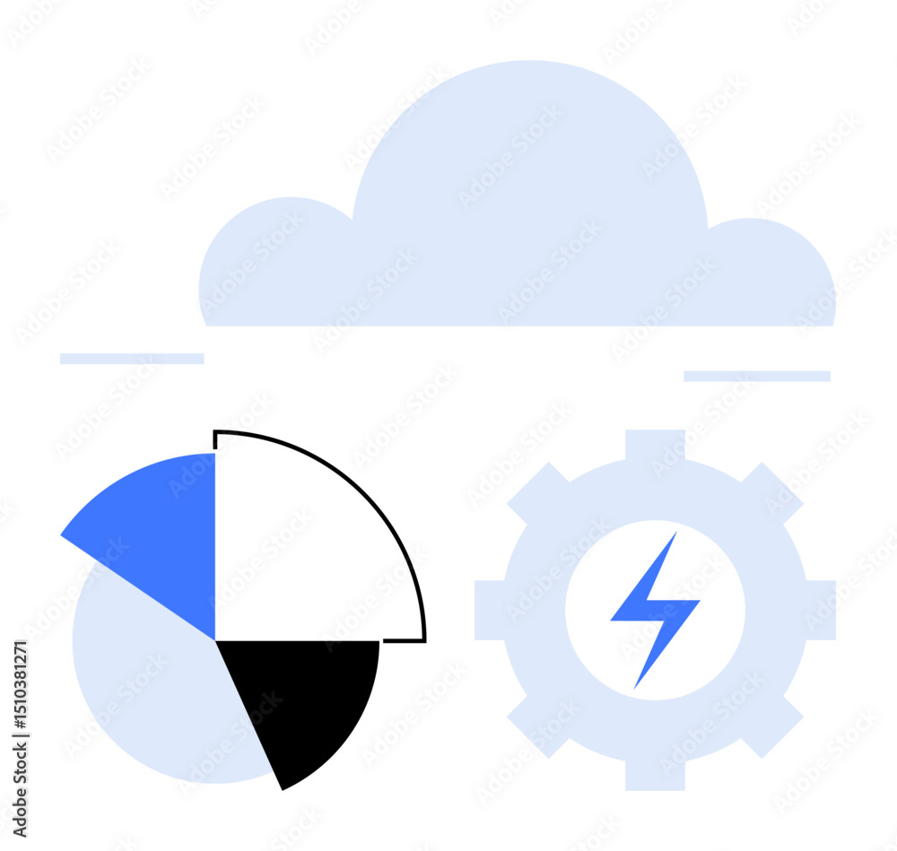Wall mural : Cloud with pie chart and cog wheel highlights cloud computing, data analytics, innovation, productiv