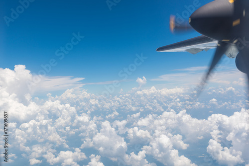 The watermark will not be included on Wall mural.: Clouds and sky with wing of an airplane -