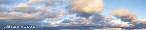 Wall mural clouds in evening dusk sky panoramic view. climate, environment and weather concept sky background.
