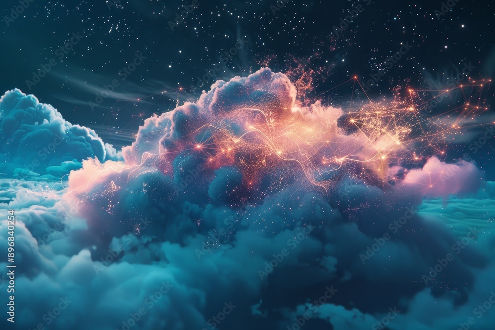 Wall mural clouds moving across the starry night sky, creating a mesmerizing celestial display, experiment with - Wall murals Wall mural clouds moving across the starry night sky, creating a mesmerizing celestial display, experiment with - Wall murals