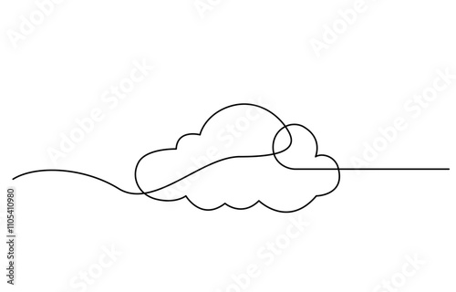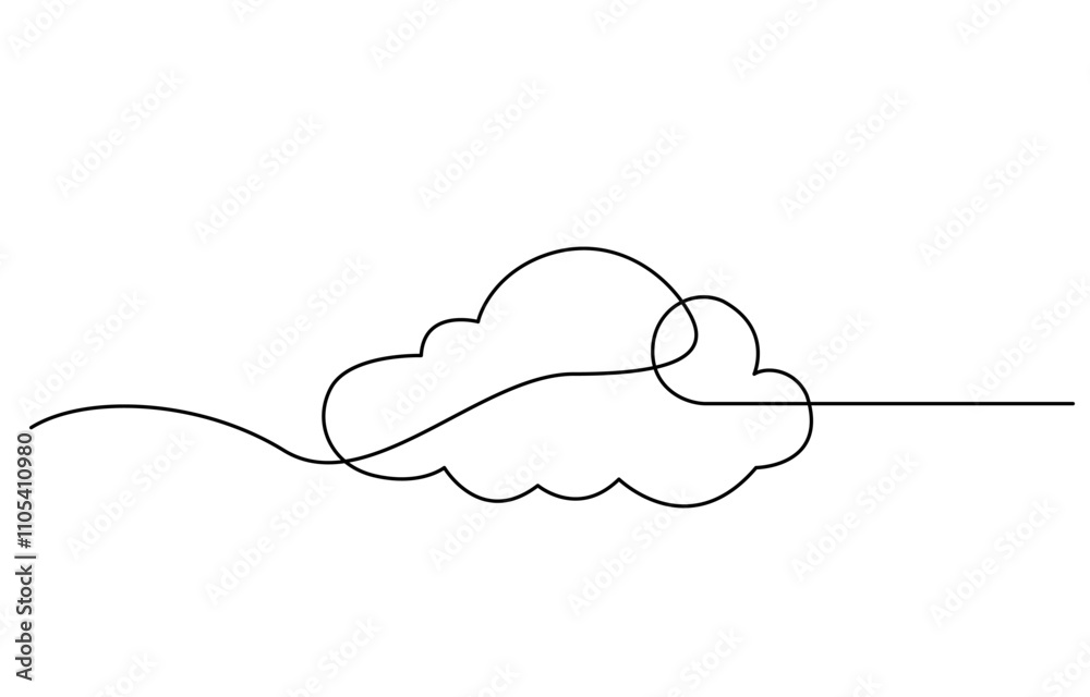 The watermark will not be included on Wall mural.: Clouds one continuous line drawing, vector illustration drawn with one continuous line of clouds in
