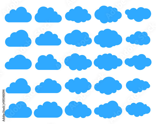 Wall mural : Clouds silhouettes - vector set of clouds shapes - collection of various forms and contours - design el