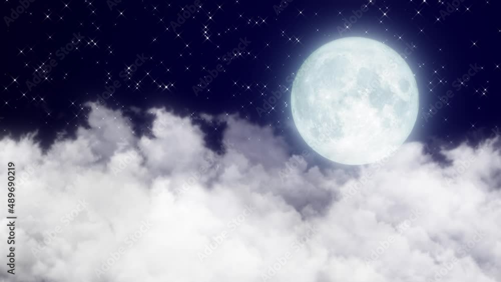 The watermark will not be included on Wall mural.: Clouds with full moon and starry night animation,glowing and shiny stars and big moon,space and gala