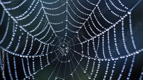 Wall mural cobweb or spiderweb natural rain pattern background close-up. cobweb with drops of rain pattern in b