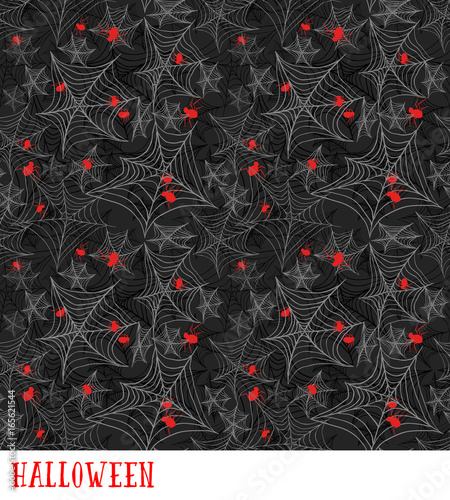 The watermark will not be included on Wall mural.: Cobweb seamless pattern - vector halloween background - spider s gossamer on the black -