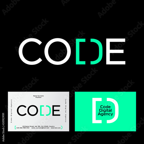 Code logo - logo for digital company - letter d consist of left square bracket and right parenthesis - Wall mural