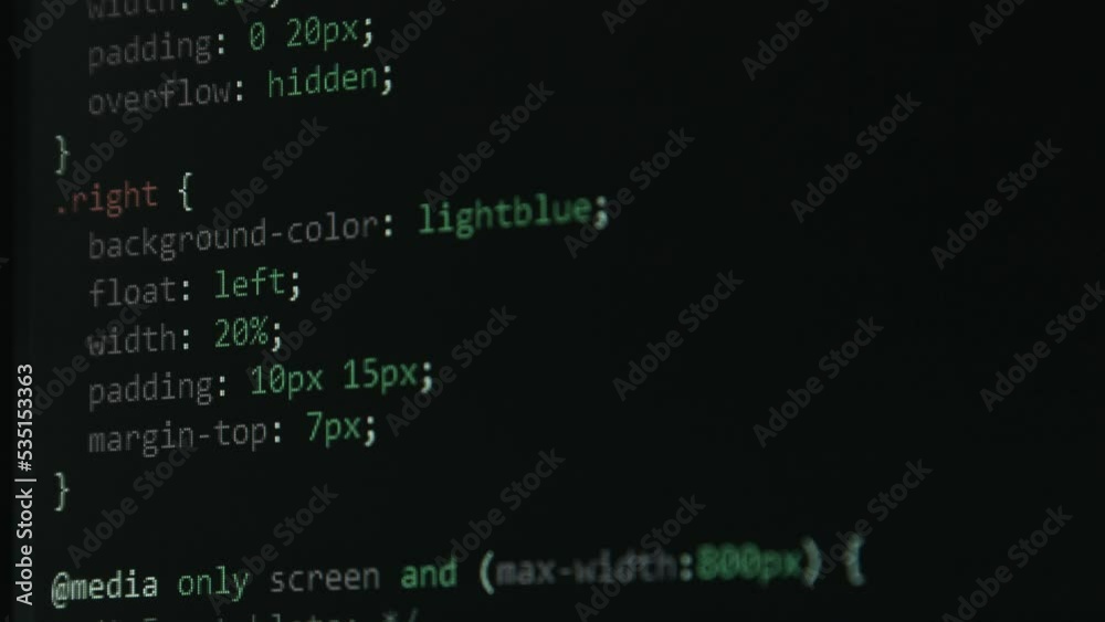 The watermark will not be included on Wall mural.: Code screen with different colours being navigated with close up pixel details html