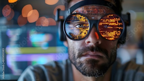 Wall mural : Coder in goggles developing software with monitor reflection - concept technology, coding, goggles, s