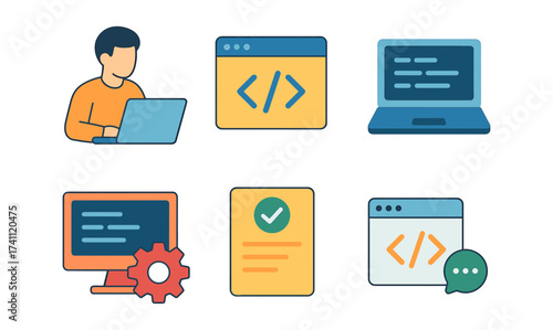 The watermark will not be included on Wall mural.: Coding and development icons collection in minimalist flat design style