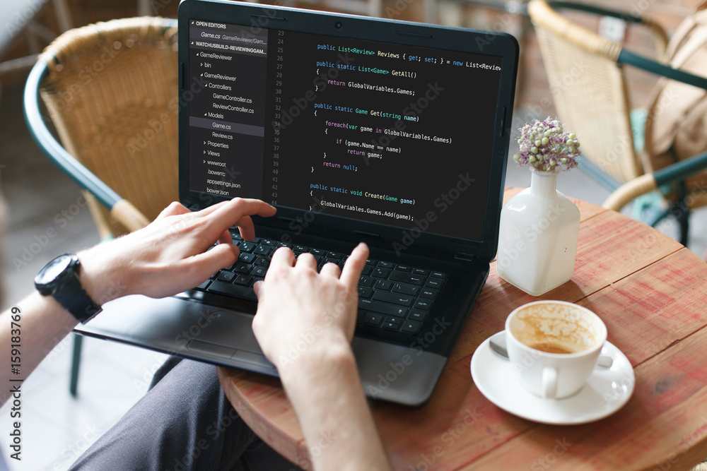 Wall mural coding code program programming developer compute web development coder work design software closeup