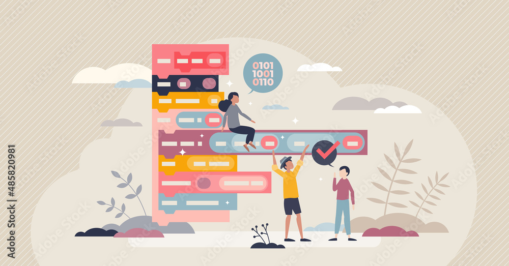 Wall mural coding for kids and programming learning from early age tiny person concept. php, html or css langua - Wall murals Wall mural coding for kids and programming learning from early age tiny person concept. php, html or css langua - Wall murals
