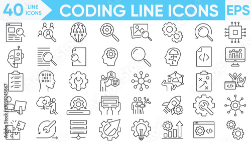 The watermark will not be included on Wall mural.: Coding line icons vector and illustration set -