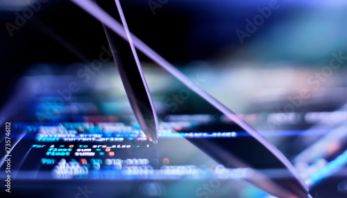 The watermark will not be included on Wall mural.: Coding script text on screen - notebook closeup photo - running computer data programming -