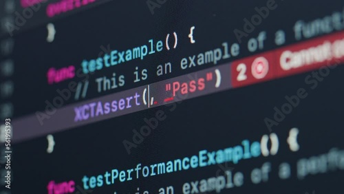 Wall mural : Coding ux ui script text on screen, html5 in editor for website development, close up macro of progr