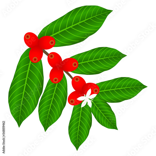 The watermark will not be included on Wall mural.: Coffee branch with white flower and red berries -