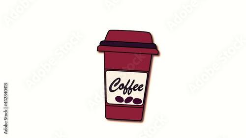 Wall mural : Coffee to go paper cup - seamless loop animation - line art - concept of takeaway drinks - luma matte -