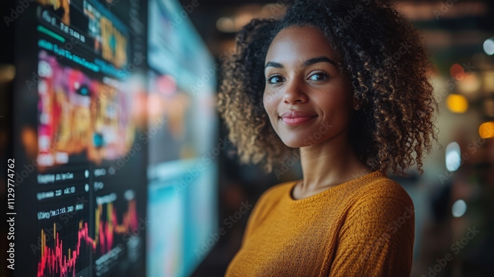Wall mural : Collaborative session with digital whiteboards in a modern office setting during evening hours