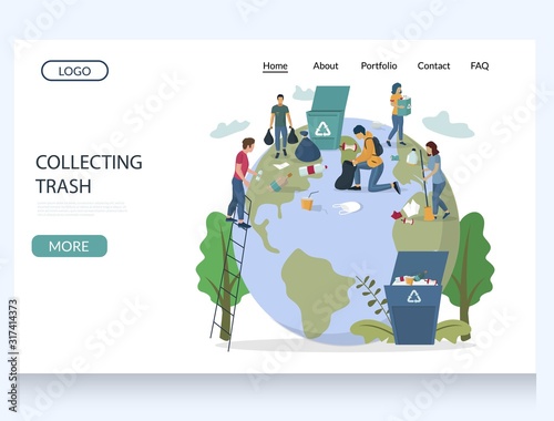 The watermark will not be included on Wall mural.: Collecting trash vector website landing page design template