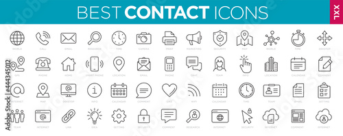 Wall mural collection contact icons line web and mobile icon. chat, support, message, phone. vector illustratio