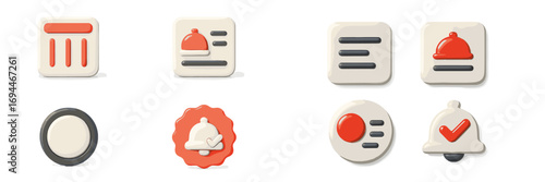 The watermark will not be included on Wall mural.: Collection of 3d user interface icons for web and mobile applications featuring a notification bell,