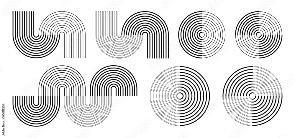Wall mural collection of abstract geometric shapes composed of concentric lines. curved and circular forms with