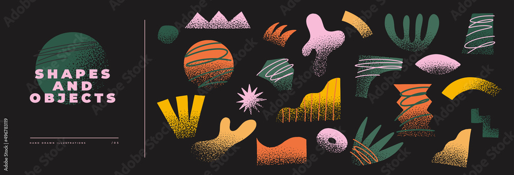 Collection of abstract graphic forms on a dark background - minimalist elements in the style of moderWall mural