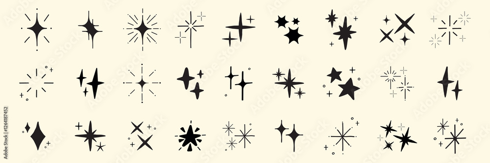 Collection of black starburst icons on a light background - various starburst shapes and sizes - starbWall mural