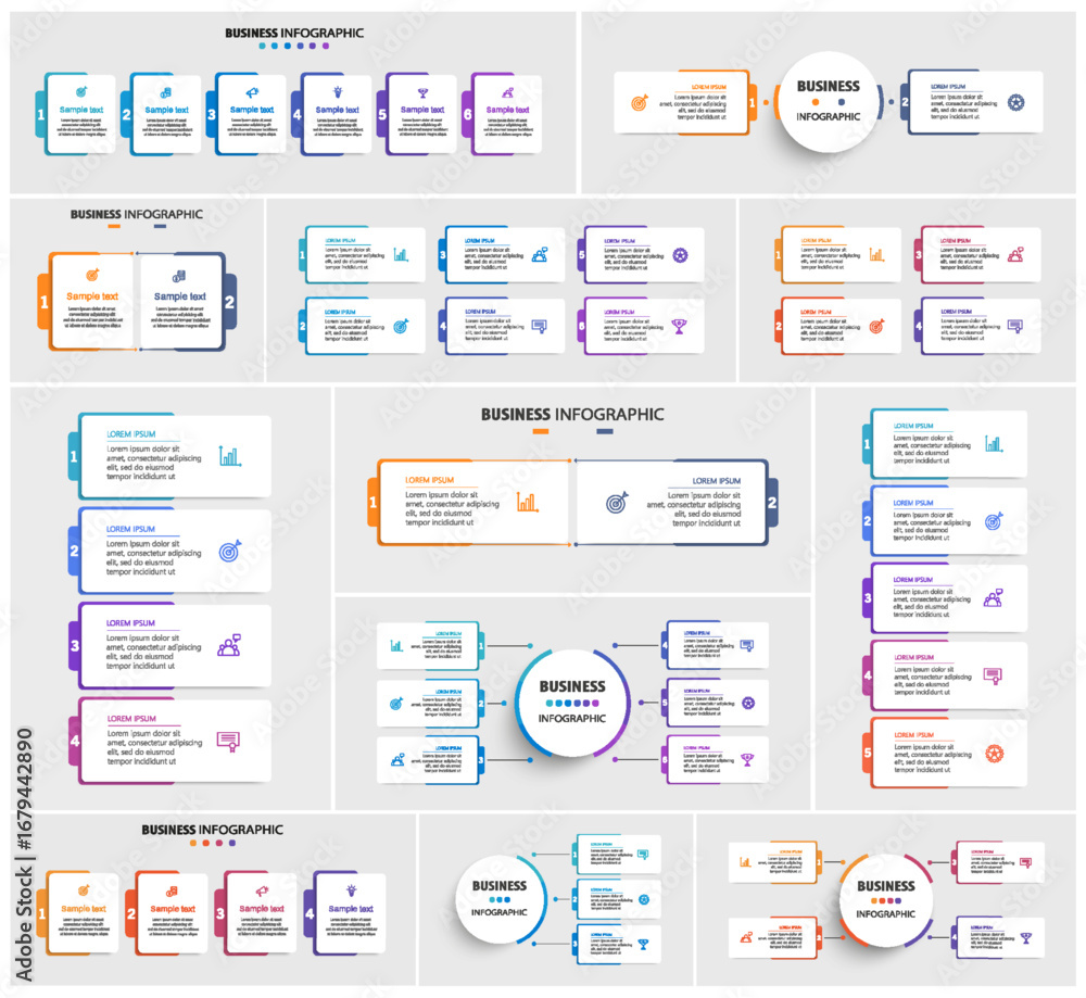 Wall mural collection of business infographic design template with options, steps or processes. can be used for - Wall murals Wall mural collection of business infographic design template with options, steps or processes. can be used for - Wall murals