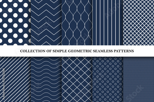 The watermark will not be included on Wall mural.: Collection of classic seamless simple patterns - vector geometric backgrounds