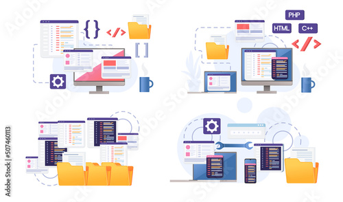 Wall mural collection of concept for development using programming languages with online sharing data vector il - Wall murals Wall mural collection of concept for development using programming languages with online sharing data vector il - Wall murals