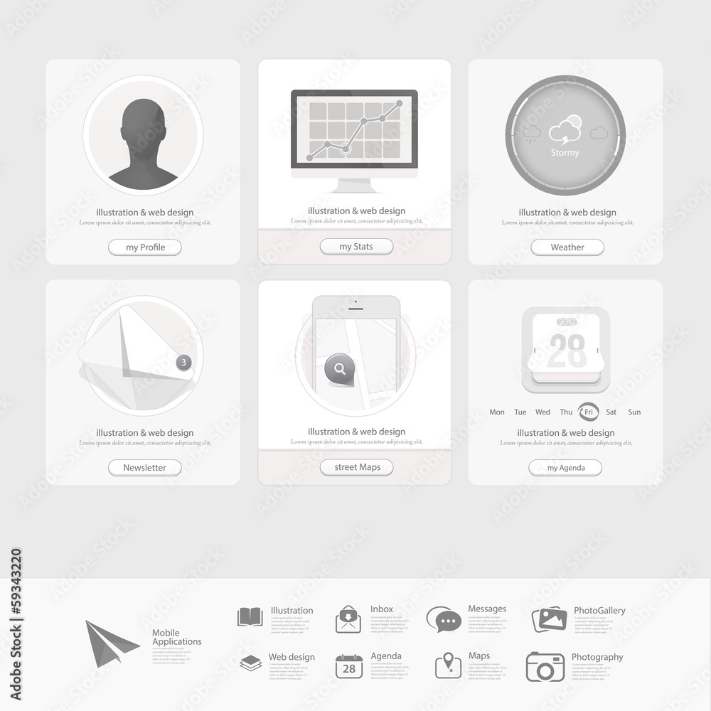 Wall mural collection of flat ui elements for website template with icons - Wall murals Wall mural collection of flat ui elements for website template with icons - Wall murals