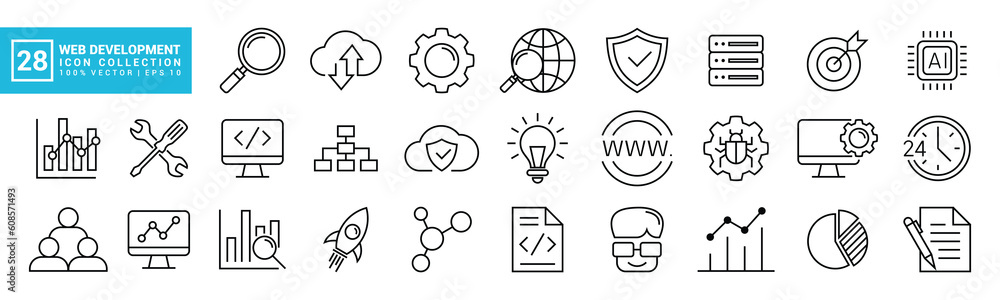 Wall mural collection of icons for website developer, programmer, code, application, connection, editable and r - Wall murals Wall mural collection of icons for website developer, programmer, code, application, connection, editable and r - Wall murals
