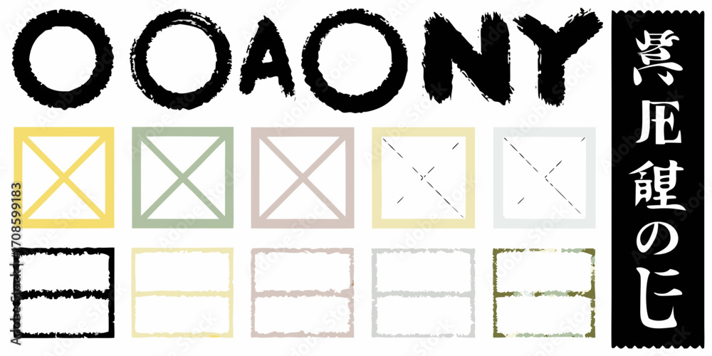 The watermark will not be included on Wall mural.: Collection of japanese calligraphy style graphics and frames with text elements