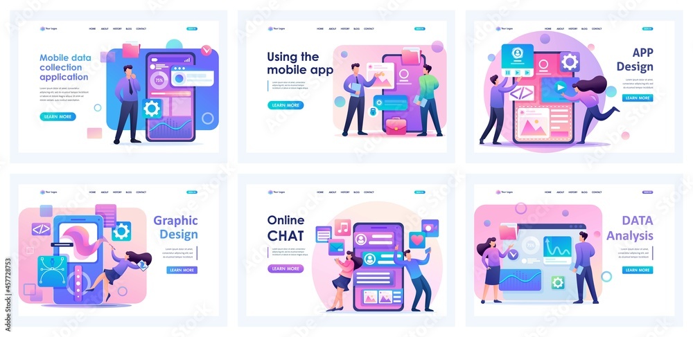 Wall mural collection of landing pages. mobile applications for creating graphic design, data processing, data  - Wall murals Wall mural collection of landing pages. mobile applications for creating graphic design, data processing, data - Wall murals