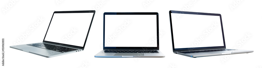 Wall mural collection of laptop or notebook isolated on transparent background. png file..