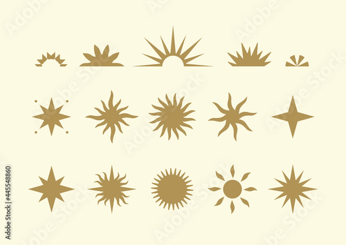 Wall mural collection of modern abstract sun illustrations in boho style. vector design elements for branding,