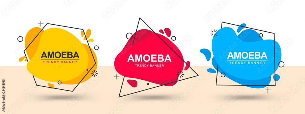 Wall mural collection of modern bright geometric banners. vector banners in the style of memphis. template read