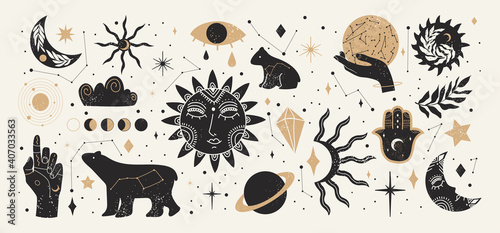 The watermark will not be included on Wall mural.: Collection of mystical and astrology objects in boho style - vector illustration -