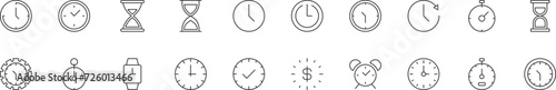 The watermark will not be included on Wall mural.: Collection of thin line icons of clock - linear sign and editable stroke - suitable for web sites, boo