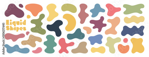 The watermark will not be included on Wall mural.: Collection of various colorful abstract liquid shapes in soft tones on white background - each shape